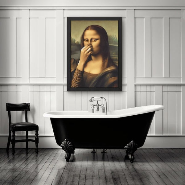 Grappige muurschildering van de Mona Lisa: Of je nu een liefhebber bent van klassieke kunst, een zwak hebt voor surrealisme of gewoon van een grapje houdt, deze "geknepen neus en stinkend gezicht", renaissancekunst en onzinnige humor zorgen voor een hilarisch visueel contrast. Deze unieke kunstcreatie voegt een vleugje persoonlijkheid en humor toe aan je badkamerinrichting, waardoor het de perfecte badkamerprint is om op te hangen of als leuk cadeau voor de badkamerliefhebber in je leven.